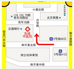 2、地鐵5號線到“和平里北街站”出A2口西行200米至興化路再北行200米興化路的紅綠燈即是。
